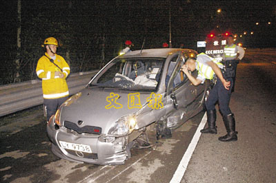 途經駕駛人士發現車禍報警,警員接報趕抵時,發覺車內空無一人,由於隔鄰為一個山坡,恐防意外後有人墮山,於是利用大光燈照明搜索,但無發現。稍後一輛拖車到場,拖車司機向警員表示乃一女子電召委託到場拖車,警員聞言拒絕,並要求拖車司機找該女子到場。