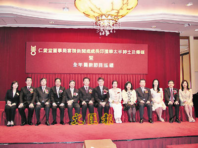 仁愛堂昨日假座港麗酒店宴請新聞處處長邱騰華及其他傳媒界朋友,會上,仁愛堂主席張心瑜介紹了未來的籌款活動情況,她說,承繼去年,仁愛堂將繼續協助體弱長者定為重點項目,計劃進一步擴大「樂助弱老」基金的服務範圍及受惠人數,旨在協助體弱長者在個人照顧服務支援和生活質素方面得以改善,例如家居清潔及維修、陪診護送、日間看護、家居物品轉贈等活動。她呼籲市民、社會人士鼎力支持,共襄善舉。