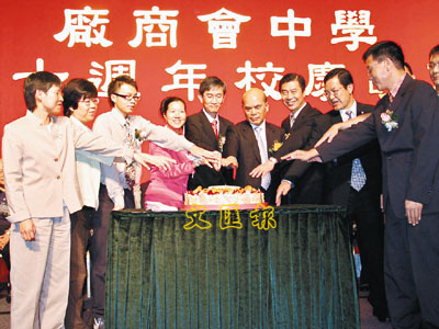 ■廠商會中學30周年校慶,賓主切蛋糕慶賀。