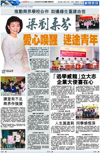 記者最近有機會參與有關活動,見證了令人感動的一幕:一群對自己無信心、對人不信任、散漫、逃學的邊緣學生,在參與7個工作坊活動後,從「矇查查」的人生中驚醒過來,重新認識自己,認識社會,明確了自己的人生路向,增強面對挑戰和逆境的信心。令梁劉柔芬驕傲的是,在推廣有關計劃中,她成功地實踐了自己致力推動的社會企業的理念。