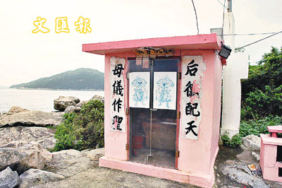 ■塘福石灘旁的小廟,貼著「后德配天母儀作聖」對聯。