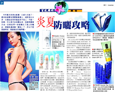 ¡@¦pªG¥u¬O¤@¯ë¤é±`ªº±³¡¨¾ÅΡASOFINAªºUV CUT MILK/CREAMSPF24PA+++¬O¤£¿ùªº¿ï¾Ü¡A¶°¨¾ÅΤÎÅ@½§¥\®Ä¡ARISE¨t¦C¾A¦X¦~»´·¥®e©ö¨ü©u¸`¡BÀô¹Ò¼vÅTªº²V¦X©Ê¦Ù½§¡A¥|¤Q·³¥H¤Wªº¦¨¼ô¦Ù½§«h¥i¿ï¾ÜVITAL RICH¨t¦C¡A³o´Ú¨¾ÅΧó¥i·í§@¤Æ§©©³Á÷¥Î¡FIPSAªºProtector Day Shelter Bright Vision¥þ¤è¦ì¬¯¥Ø¨¾ÅÎ×Å@¤éÁ÷¡A°£¤F¦³SPF30PA+++ªº°ª¨¾ÅΫסA§ó¯S§O°w¹ï·t°×ªº¦Ù½§¡AÁ٨㦳±j®Äªº§Ü®ñ¤Æ¥\¯à¡A½è·P¤ô¬Õ»´Á¡,¦P¼Ë¥i§@§©«e©³Á÷¡C