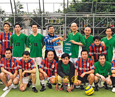 世界盃熱潮席捲全城,進入16強球賽,足球氣氛更加濃厚,就連香港置業行政總裁胡日發都「腳癮」發作,日前與泛海集團舉行一場足球友誼賽(見圖),胡氏與泛海集團執行董事關堡琳齊齊落場,過足「球癮」,兩隊球員賽後更一齊觀賞世界盃賽事,非常熱鬧。