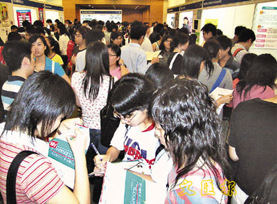 ■經濟好轉,大專畢業生的就業職位大增。圖為勞工處早前舉辦招聘會,吸引大批年輕人來求職。 資料圖片