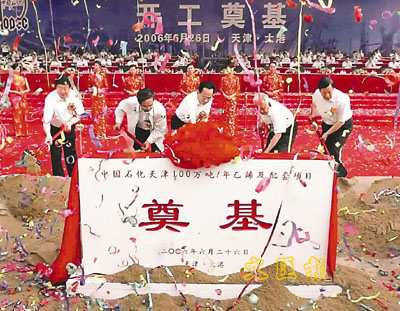 中共中央政治局委員、天津市委書記張立昌,全國政協原副主席陳錦華,天津市市長戴相龍,常務副市長黃興國,天津市委常委、濱海新區工委書記、濱海新區管委會主任皮黔生,天津市委秘書長苟利軍,中國石化集團公司黨組書記、總經理、股份公司董事長陳同海,中國石化集團公司黨組成員、股份公司總裁王天普等出席開工奠基儀式。