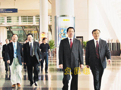 ■江西省委副書記、常務副省長吳新雄(右二),江西省外經貿廳廳長楊洪基,江西省政府副秘書長譚曉林,南昌市常委副書記、常務副市長龔建華等一行再次到港,充滿喜悅和期待。本報記者喻淑琴 攝