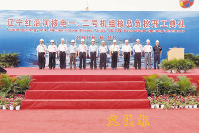 【本報珠三角新聞中心記者舒文莉深圳電】 由中國廣東核電集團為主負責,中國電力投資集團全面參與的國家「十一五」期間首個批准開展前期工程的核電項目—遼寧紅沿河核電站一期工程1、2號機組核島負挖於6月28日開工。標誌著遼寧紅沿河核站一期正式進入主體工程。