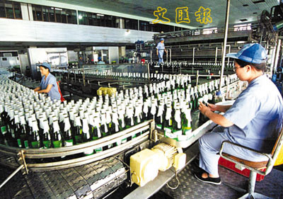 ■青島啤進入世界啤酒業10強,是重點發展項目之一。圖為青啤生產線。