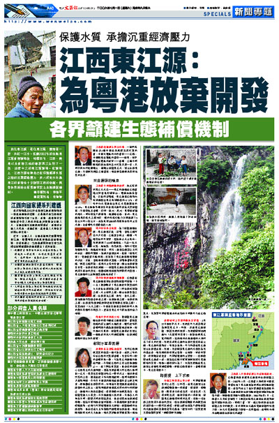 我住東江頭,君住東江尾,贛港是一家,共飲一江水。在繼2002年的生態東江源香港論壇後,時隔四年,江西、廣東以及香港三地的專家再次坐到了一起,出席今次的東江源論壇。在論壇上,江西方面坦陳自己在保護潔淨水源之餘的沉重經濟壓力,而八成食水依靠東江的香港也十分體諒江西的奉獻。與會各界紛紛主張要盡早設立生態補償機制。