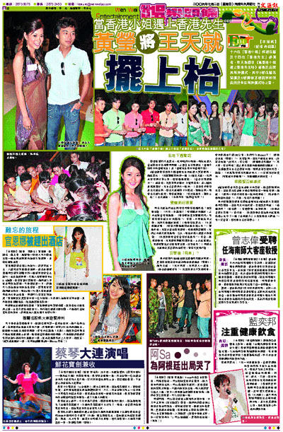 問王天就為何在合照時要和黃瑩低頭私語?他緊張地答:「冇呀,你聽錯了!佢係朋友的朋友,之前在聚會時見過面。(黃瑩很欣賞你變魔術喎,咁係唔係你追女仔的絕招?)唔係,冇野做玩w之嘛,我們只是朋友關係!」而黃瑩也表示:「大家係朋友囉。(佢有冇變過魔術去逗你開心呀?)變過w啦,我有次搭地鐵見到佢,佢都係練習魔術,我們之前都只係見過兩、三次,而且亦係入選後才講電話。(你覺得對佢會唔會唔好意思呀?)唔會,都係影張相。我見到佢練魔術幾得意,上次在電視上見到佢變髐鉿n長既野出薄A好得意呀!」問到王天就是否其喜歡的類型時,黃瑩只笑而不答。