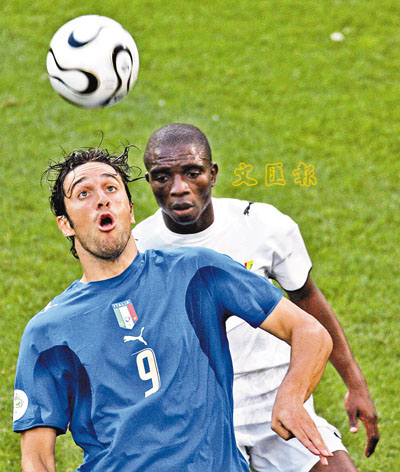 ■意大利東尼(左)在加納的柏普爾面前迎頂來球。 美聯社