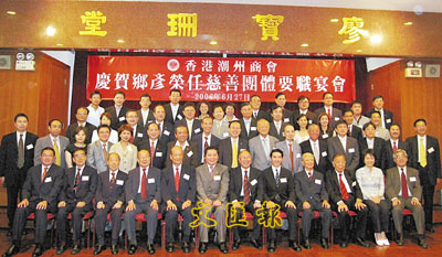 【本報訊】(記者 鄭群)香港潮州商會日前於會所舉行晚宴,恭賀26位鄉彥榮膺本港6大慈善機構董事局主席、總理要職,潮州商會會長莊學山代表該會對各鄉彥表示熱烈祝賀,讚揚各人秉承潮人樂善好施、回饋社會的優良傳統,服務社會。他並希望大家,通過自身的影響力及號召力,介紹更多的潮州精英加入商會,共同關心商會的建設發展,令80多年歷史的老商會,煥發青春活力,為香港、為社會做出更大貢獻。