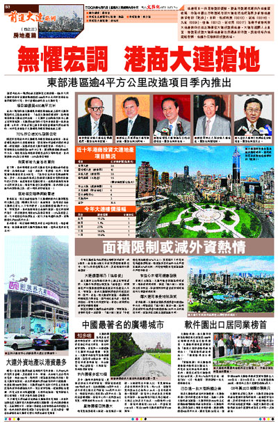 儘管內地新一輪房地產宏觀調控已經啟動,但6月以來大連市政府拿出總建築面積近1000萬平方米的市區黃金地段來港招商引資,吸引香港地產商北上大連投資。