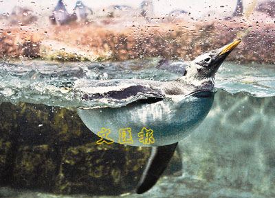 ■夏日炎炎,不只人類四出尋求消暑方法,這隻幸運的德國企鵝,面對三十多度的高溫,好在動物園主動降低水池溫度,你看幾嘆。 (法新社)
