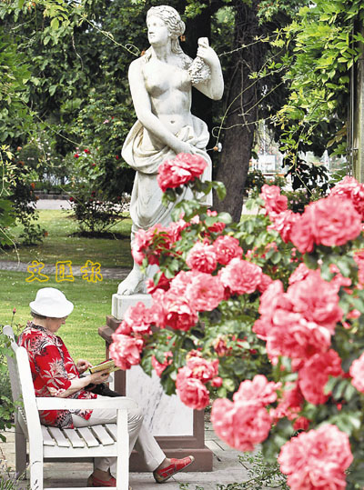 ■德國棕櫚園賞花的勝地如何悠閒?問圖中看書的先生就知道了。 (法新社)