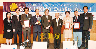 【本報訊】(記者 潘曉平)香港管理專業協會頒發的2006年度優質管理獎頒獎典禮,日前假洲際酒店舉行。香港特區政府機電工程營運基金奪得金獎;優質管理銅獎得主包括其士富居物業管理有限公司,香港飛達帽業控股有限公司;設廠在佛山的活思環保包裝有限公司,獲得「中小企業特別獎」。