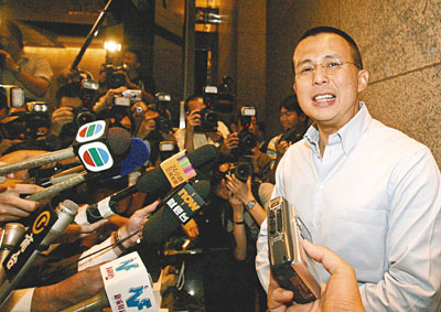 ■電盈主席李澤楷宣布,將23%電盈股權售予梁伯韜財團。 本報記者張偉民 攝