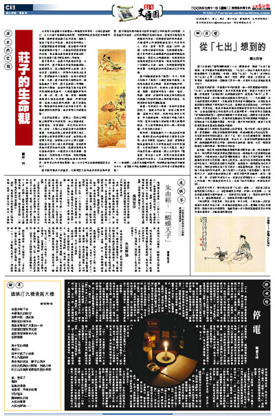 七月四日在香港天水圍發生一宗集體自殺事件,三婦女燒炭死亡。三人均留下遺書稱生無可戀。我們對輕生者尋死表示無限的惋惜。她們沒有超越人生的苦痛,最終人為地了結自己的生命。隨著生命的終止,人就變得絲毫沒有價值,就好像句子沒有完成便擱筆不寫了,不僅這句話沒有完整的意義,甚至連意思也還沒有表達出來。這令我想起了莊子對生命的一些想法。