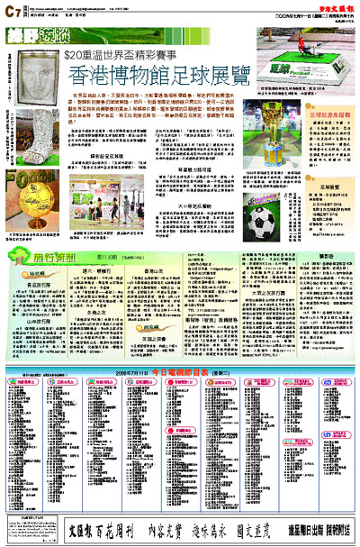 為配合今屆世界盃盛事,康文署與英國足球博物館合作,在歷史博物館舉辦足球專題展覽,展出150多件古今中外的精選展品、是有史以來英國足球博物館最大型的海外展覽。