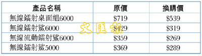 炎炎夏日,想為個人電腦增添至Cool的涼快感覺,換上冰亮銀色的微軟鐳射系列滑鼠或桌面組合便是最理想選擇。由即日起至9月3日期間,可憑任何品牌之舊滑鼠、鍵盤或組合到指定之Microsoft特約經銷商,即可以最低至七五折的優惠價錢換購指定之微軟鐳射滑鼠或桌面組合。各款「至Cool舊換新」產品包括:微軟無線鐳射桌面組6000 (Wireless Laser Desktop 6000)、無線鐳射鯊6000 (Wireless Laser Mouse 6000)、無線流動鐳射鯊6000 (Wireless Notebook Laser Mouse 6000) 或無線鐳射鯊5000 (Wireless Laser Mouse 5000)。查詢︰2388 9600