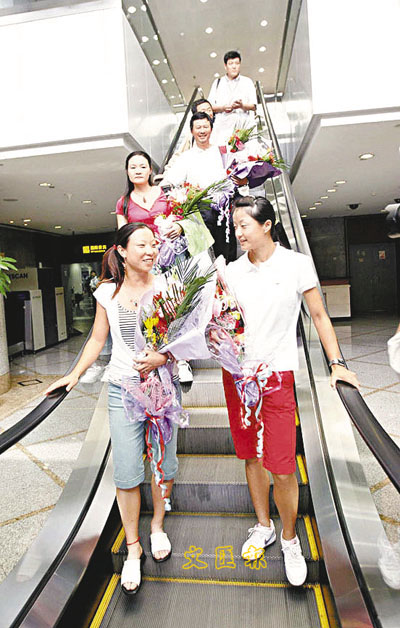 在機場舉行的簡短歡迎儀式上,中國國家體育總局網球運動管理中心主任孫晉芳對女網在今年溫網中取得單打八強、雙打冠軍的成績表示祝賀。她說:「今天是個好日子,但願天天是這樣迎接冠軍歸來的好日子。」