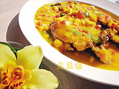 那色彩繽紛的汁醬,是這道菜的精髓。師傅以芒果打汁,再加入薑汁酒、糖、鹽、番茄、芒果粒、砂糖、雞湯等,味道極具層次。($298)