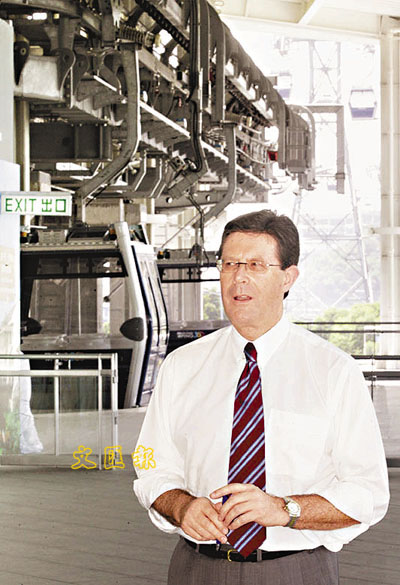 ■高德偉表示,昂坪纜車系統已完成一系列的可靠性測試,但仍未能確定纜車的開幕日期。 本報記者潘達文 攝