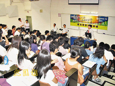 ■毛錫強與基本法大使分享自己對法治精神的看法。 本報實習記者譚可盈 攝