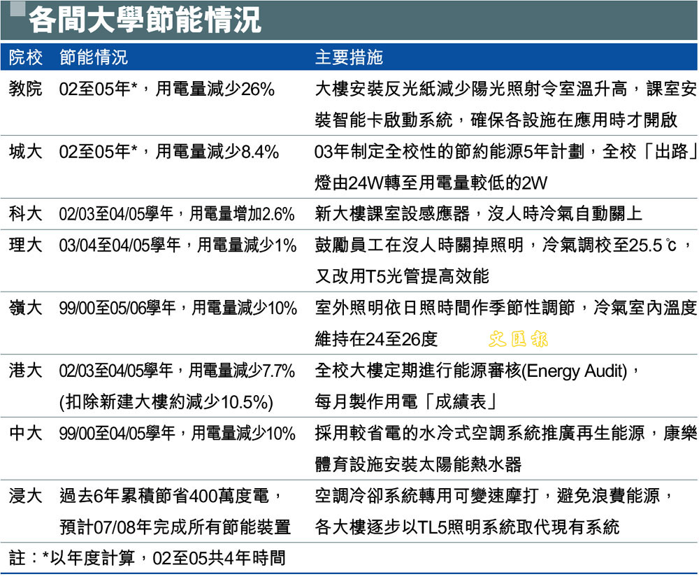 各間大學節能情況 (圖)