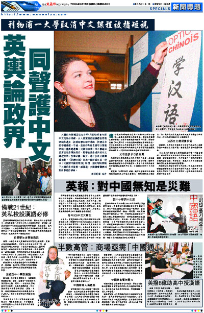 美國《時代》雜誌亞洲版,早前就以《向前走,學漢語》作封面故事,表示中文已成英文之外,全球最流行的外語。美國總統布什更打算撥款1.14億美元(8.89億港元),協助2,400多所美國高中開辦中文課程。