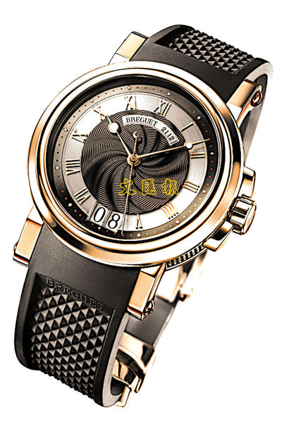 以粉紅金為腕錶錶殼的,比較罕見。這款MARINE 5817的錶面,中央刻有黑色的花波浪紋,帶出深邃的感覺。夜光分點及雙日期窗也是腕錶的矚目焦點,錶背擁有由人手裝飾波浪紋圖案設有藍寶石舷窗,清楚顯示自動上鏈機芯的穩定節拍。