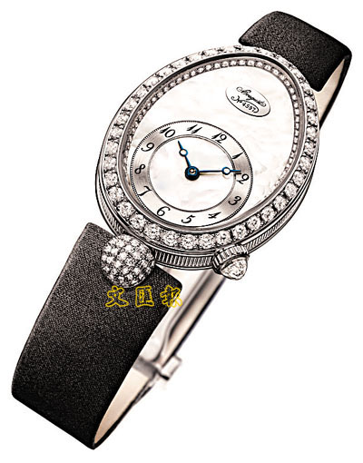 要展示女性優雅嫵媚的一面,可選這款REINE DE NAPLES 8928的腕錶,以珍珠貝母造成的橢圓形錶面。外圈、凸緣、球形錶耳及錶冠綴以排鑲閃鑽,增添高貴的氣質。再配合華麗的晚裝,定能引來艷羨的目光。