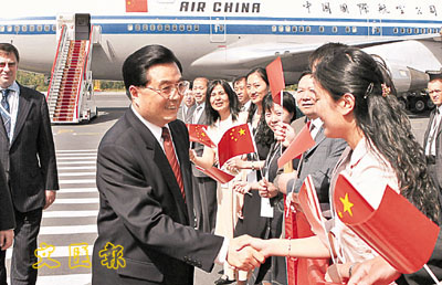 【本報訊】據中新社16日電:中國國家主席胡錦濤當地時間今天中午乘專機抵達俄羅斯聖彼得堡,出席在這裡舉行的八國集團與發展中國家領導人對話會議。這是胡錦濤主席第三次出席八國集團同發展中國家領導人對話會議。