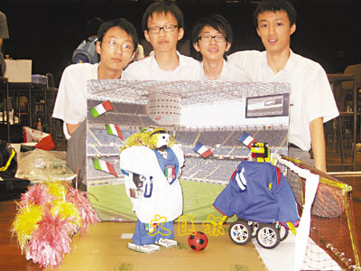 ■佛教何南金中學同學以施丹及托迪作為機械人的造型,重演世界盃的決賽情況。本報記者李浩彰 攝