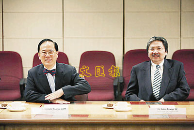 ■曾俊華(右)還未好好享受多一天假期的滋味,就陪同煲呔出訪獅城。