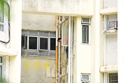現為田灣h田麗樓5樓一單位,與警員及房署人員對峙3小時的男子梁×良(37歲),04年開始入住上址一單身單位,每月租金1,040元,惟在本月10日,他因欠租近1年,遭房署收回單位。