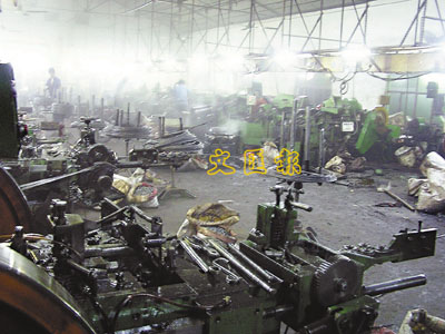 ■工人在油煙瀰漫的生產車間裡,不分日夜地加班工作。