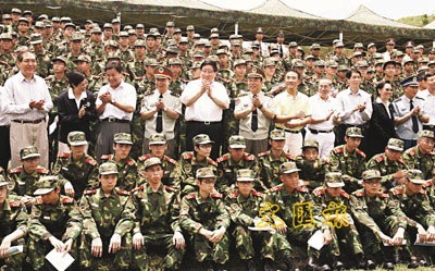 ■「香港青少年軍訓夏令營」開幕,主禮嘉賓及駐港部隊官員與學員合照。本報記者劉國權 攝