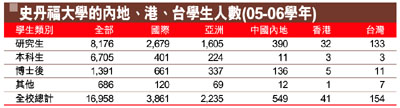 史丹福大學的內地、港、台學生人數(05-06學年) (圖)