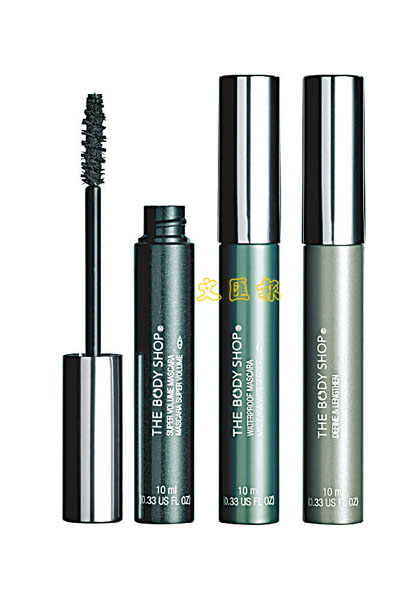 The Body Shop有三種睫毛液,全新的濃密睫毛液,有的刷毛設計讓睫毛液均勻覆蓋睫毛,讓睫毛濃密之餘,每根分明。而另一款為新的防水睫毛液,蘊含矽成份,能使色素緊貼睫毛。各有2種色調。