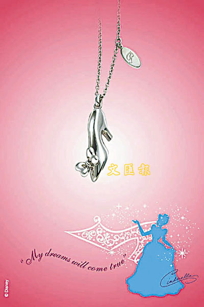 還記得白雪公主童話故事中的玻璃鞋、南瓜車及蘋果等物件嗎?周大福將這經典的物件,設計成新的迪士尼公主首飾系列,這款純銀玻璃鞋吊墜,是童話中為王子如何找回白雪公主的印證,今次成為吊墜,亦可成熱戀中的情侶愛的印記。