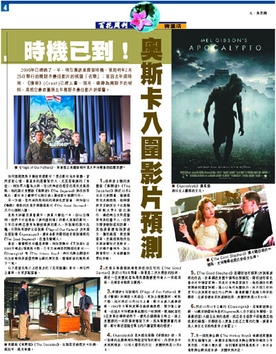 2006年已經過了一半,現在應該是適當時機,預測明年2月25日舉行的奧斯卡最佳影片的候選「名單」;皆因去年這時候,《撞車》(Crash)已經上畫一個月,盛傳為奧斯卡的材料,果然它最終贏得去年奧斯卡最佳影片的榮譽。