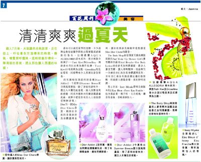 而充滿粉紅誘惑的淡香薰Dior Addict2,今夏推出Summer Breeze夏日微風限量版,除了原有的香味外,還注入木蘭花的香氣,給人淡雅清爽的感覺,同系列還推出閃爍滋潤護膚乳液,就算不愛塗香水的人士也能感受陣陣香氣;Dior另一款Miss Dior Cherie香薰,則推出全新的香薰沐浴及身體護理系列,讓你在沐浴及睡眠中也能感受Miss Dior Cherie的甜香。