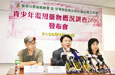 社會服務聯會今年1至3月訪問了1,123名曾經濫藥的11至24歲青少年,發現近七成人在15歲以前已濫藥,最年輕個案只得11歲,近六成人過去半年平均每月濫藥至少4次,九成人濫藥長達2年以上。逾半人通常在本港的士高濫藥,多數服用「K仔」及「Fing頭」等藥物,近年濫用「可卡因」的青少年更有上升趨勢,主要受朋輩影響及用作解悶。