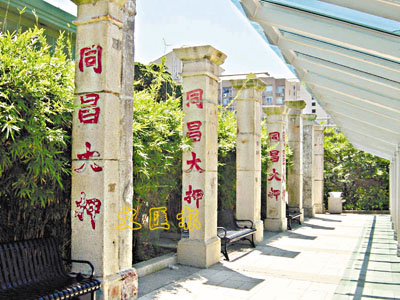■美利樓傍的石柱,是油麻地上海街重建時,保留的中式唐樓的騎樓底石柱,刻有按押店的字號。