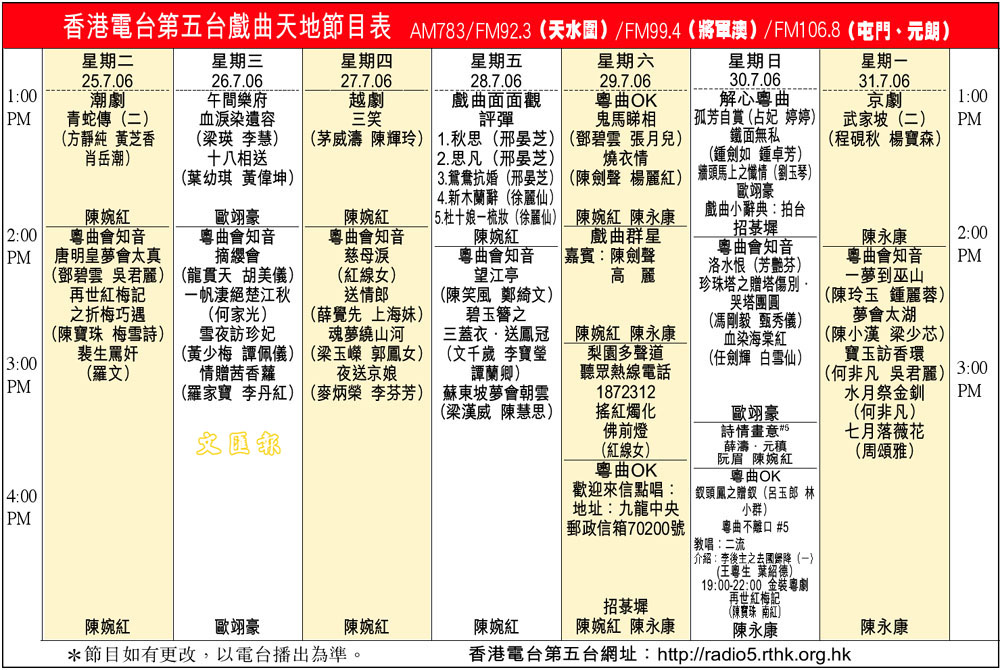 香港電台第五台戲曲天地節目表 (2006-07-25) (圖)
