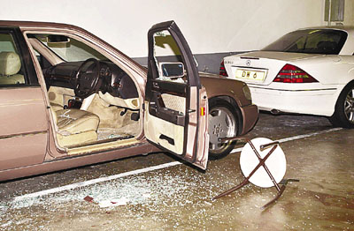 ■停車場內一輛平治的車窗玻璃被擊碎。