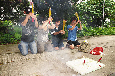兩名死者為葉裕達(15歲)及黃志威(15歲),葉是踩單車者,黃為乘客。二人的3男1女年齡相若友人,昨午1時許帶備香燭冥鏹,到車禍現場路段跪地拜祭,神情哀傷,他們還即時在一本記事簿的一頁紙上,寫上:「肥達、威仔,我瓊永遠都係你好朋友,路上小心,我瓊會掛住你瓊!」然後將該頁紙撕下焚燒,希望可送達給兩名已逝摯友。