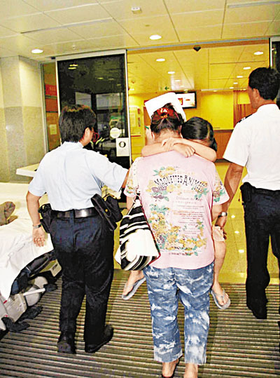 ■遭色魔帶上山非禮的女童,由母抱入院檢驗。