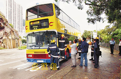 肇事城巴為行走中環廣場至赤柱的6號線雙層巴士。昨晨9時許,巴士由中環開出,沿跑馬地司徒拔道上山,至近黃泥涌峽道2號對出,司機嗅得車內傳出焦味,馬上將車停下檢查,發覺司機位頭頂的冷氣掣有煙冒出,馬上報警及疏散車內約30多名乘客,並自行以滅火器將煙火撲熄。火警中無人受傷,乘客則轉車繼續往赤柱行程。消防員調查後,認為是電線短路引致,無可疑之處。肇事巴士事後由車長駕駛回廠檢修。